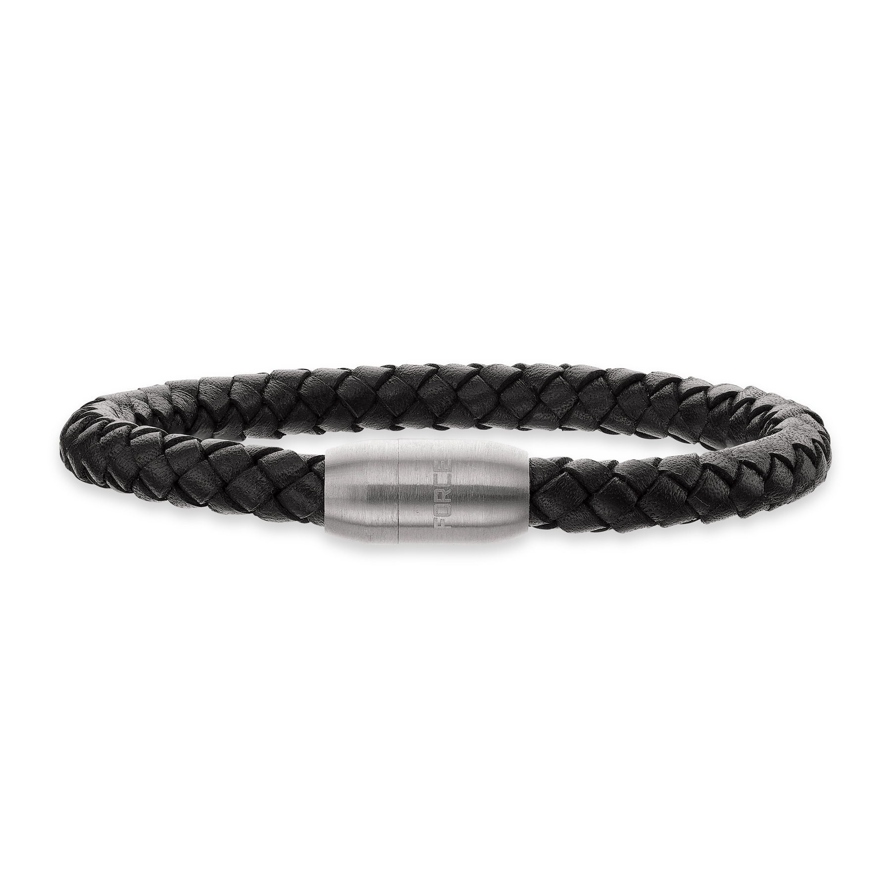 Armbånd brunt flettet læder m. stål bead