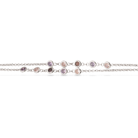 Armbånd 2 rk. rosa/lilla sten sølv rh.