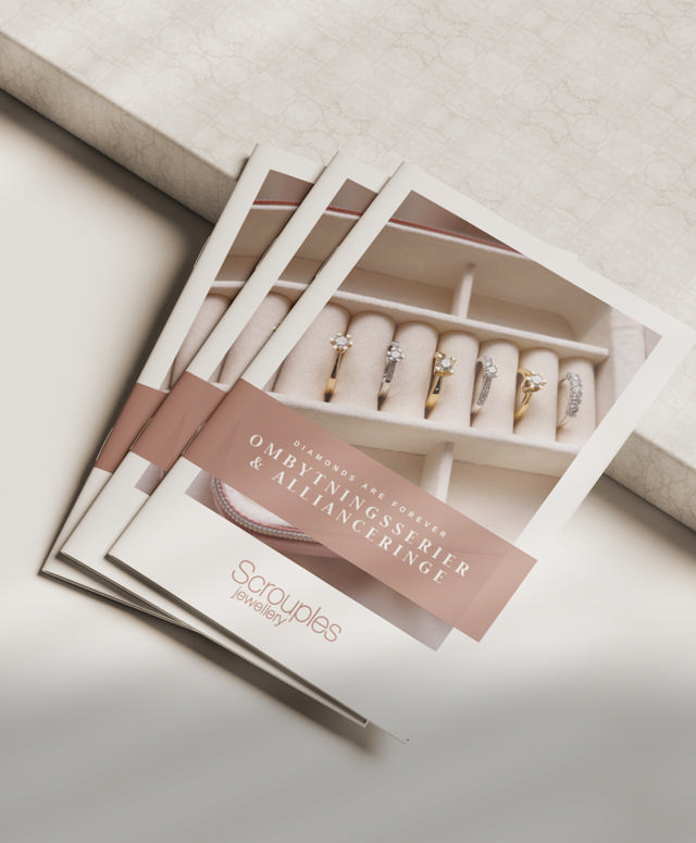 Her finder du både alle vores nyheder og vores klassiske brillantserier. Uanset om du er på udkig efter ring, halskæde, armbånd eller øreringe, så finder du det hos Scrouples. Se både smykker til kvinder, mænd og børn. Find også jeres forlovelses- og vielsesringe i vores bryllupskatalog, og se vores diamantsmykker i vores katalog med ombytningsserier og allianceringe. Køb smykkerne hos din nærmeste forhandler.