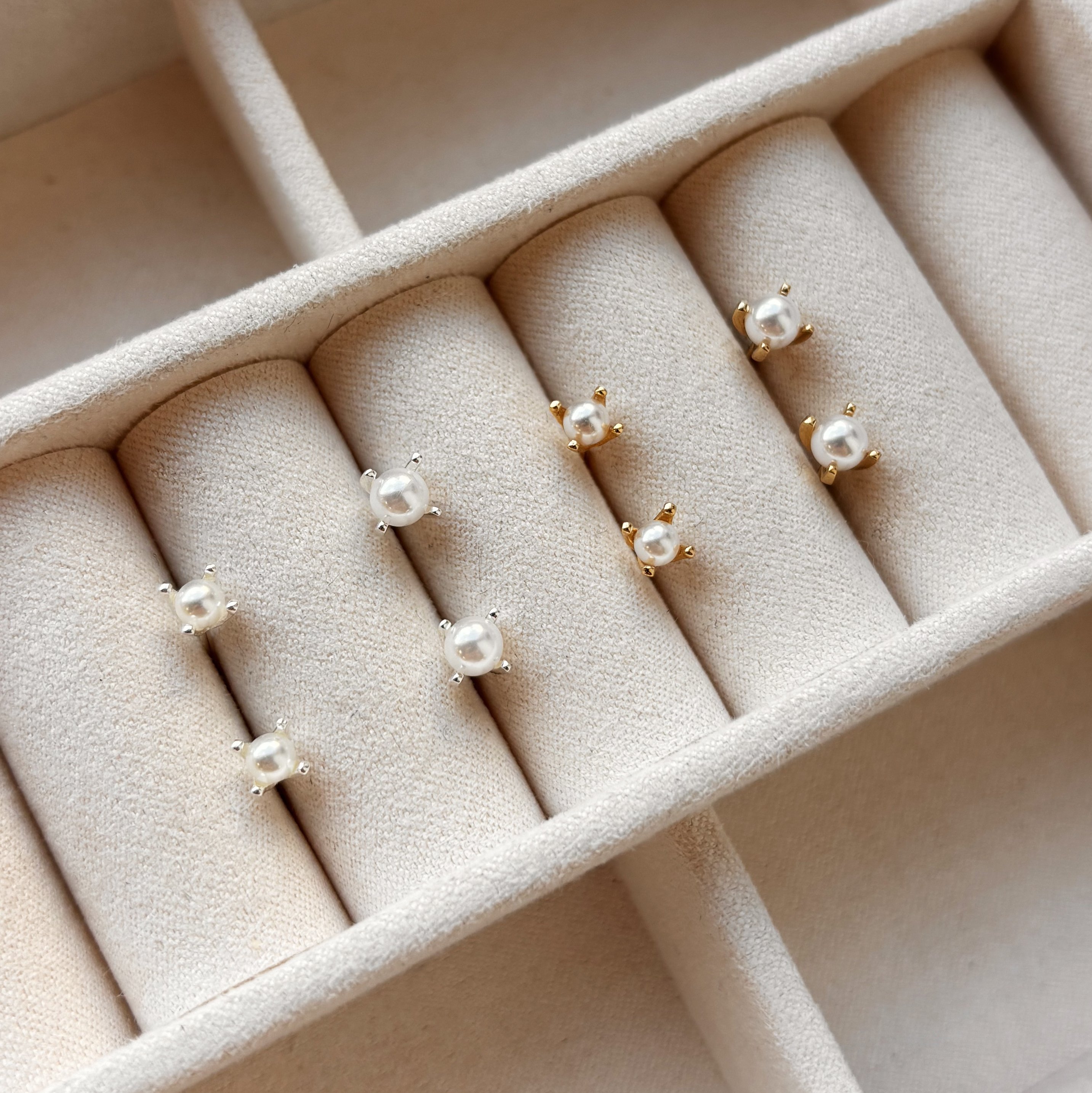 *Øreringe 4 mm. perler m. grabber sølv