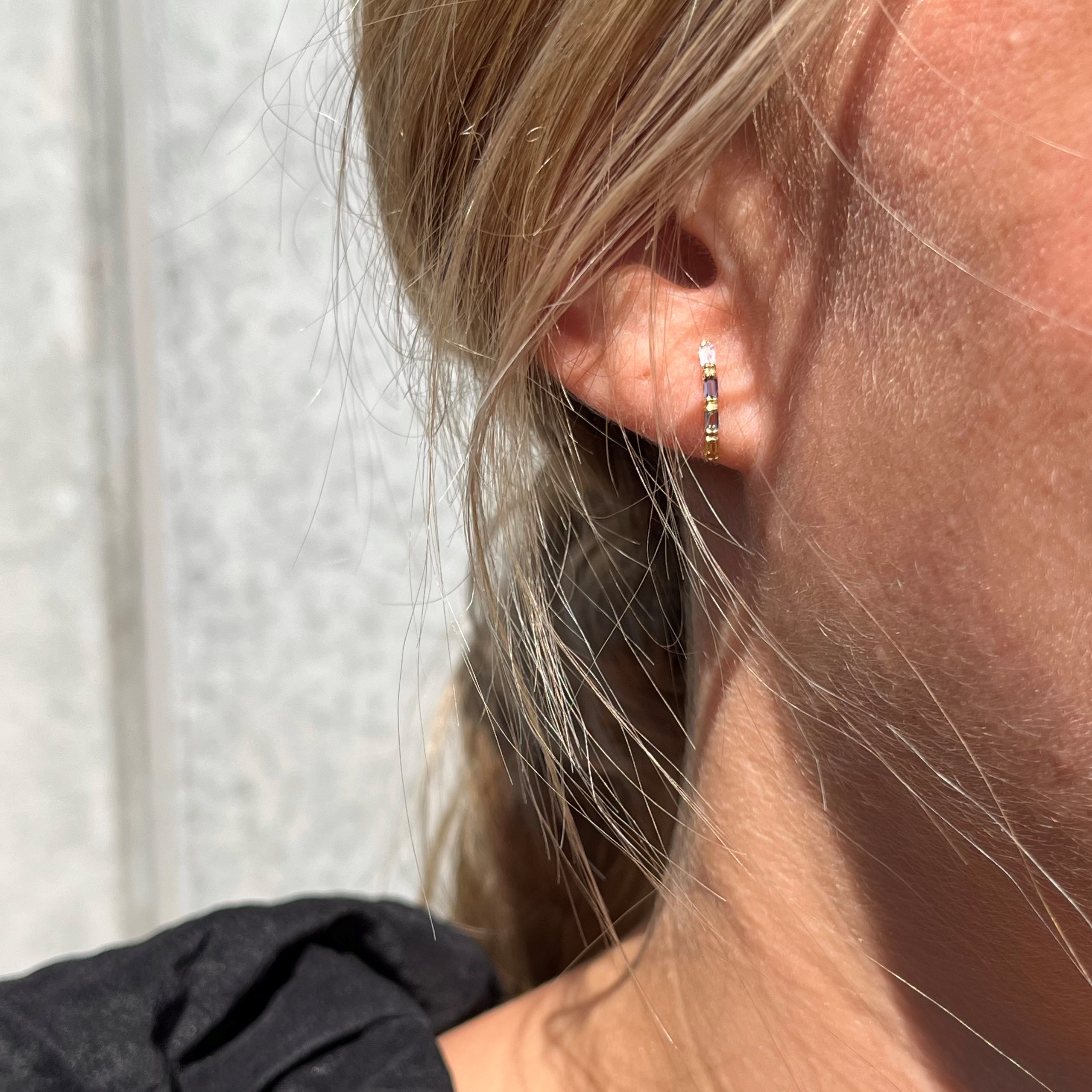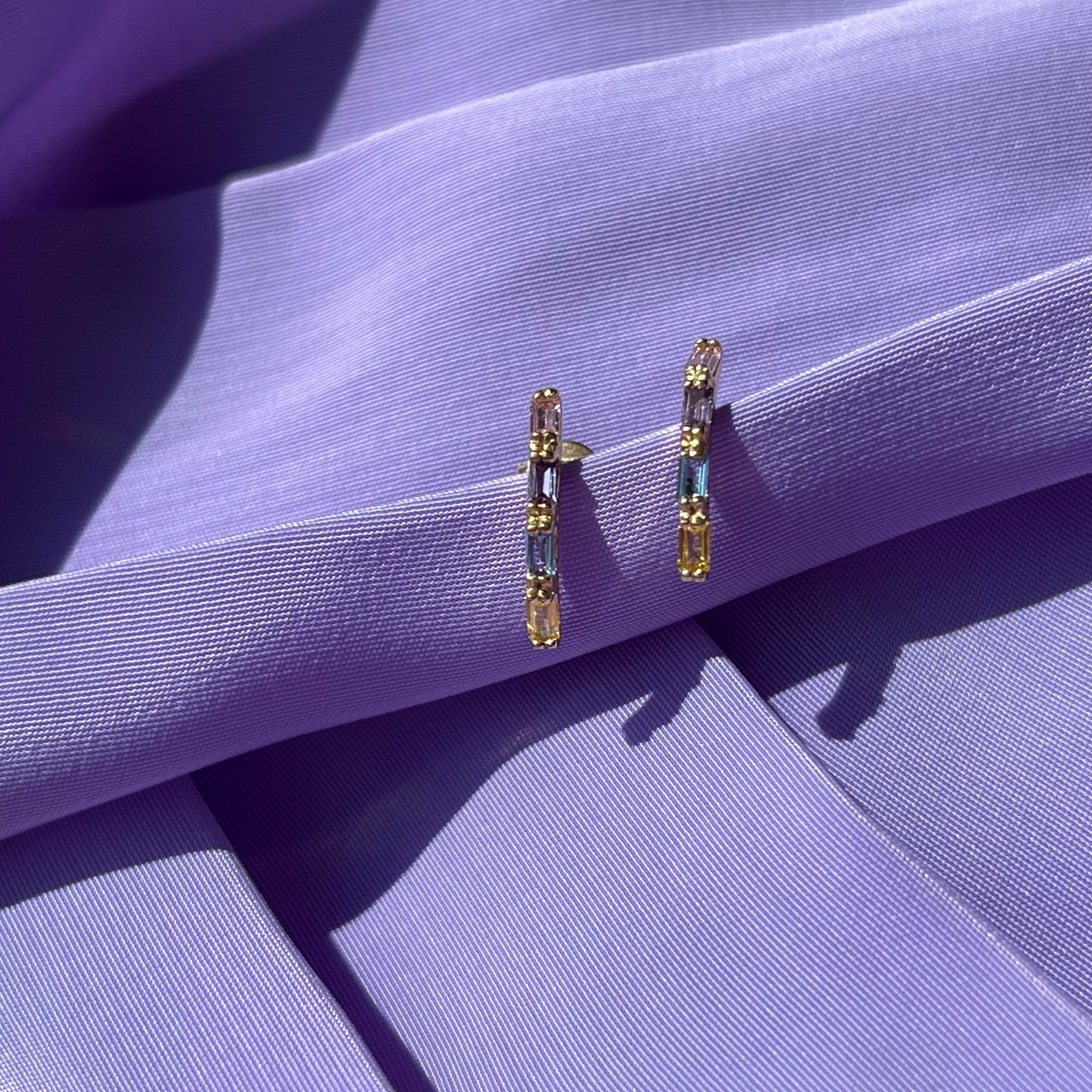Øreringe baguette multicolor cubic zir. 8 kt.