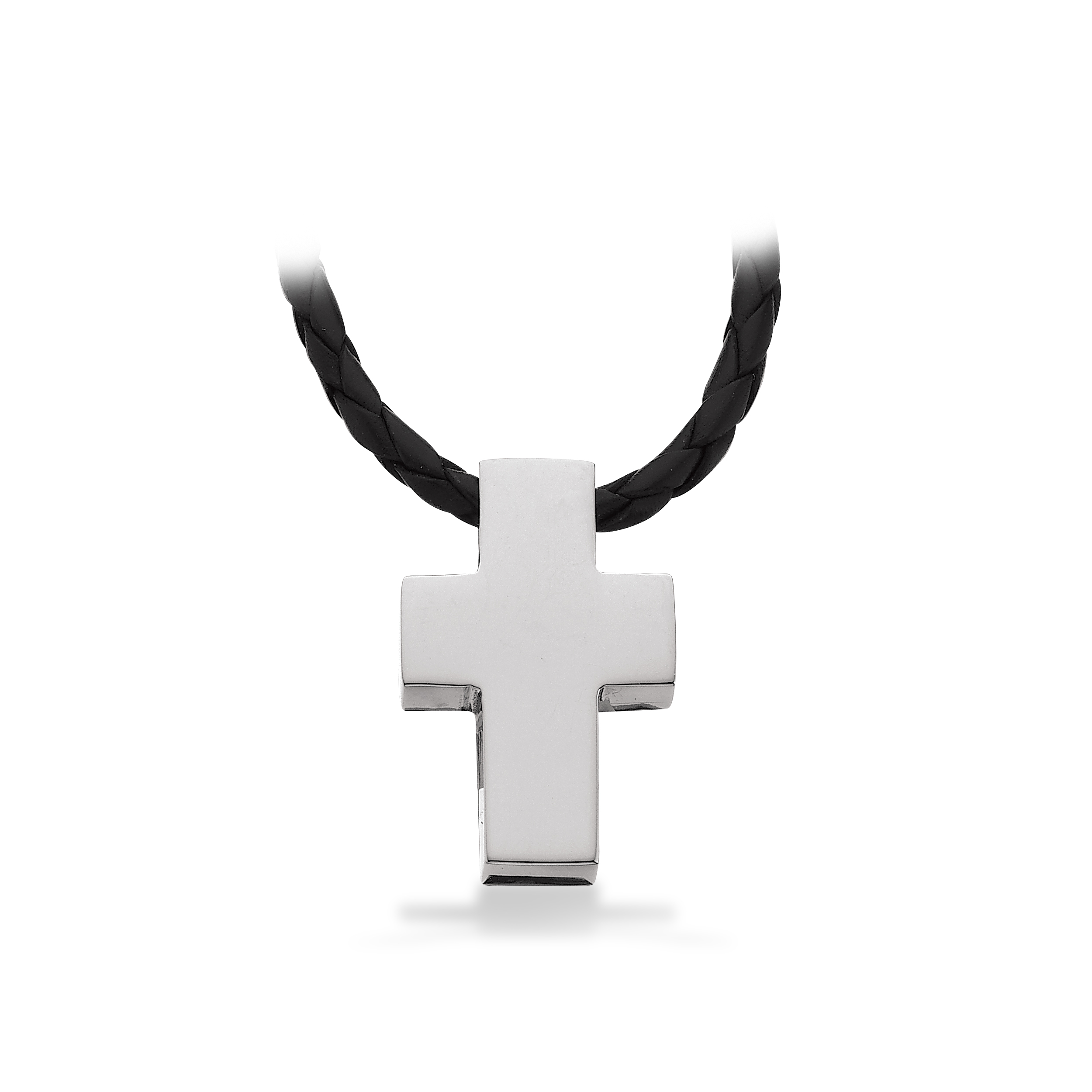 Vedhæng herre kors stål m. læderkæde