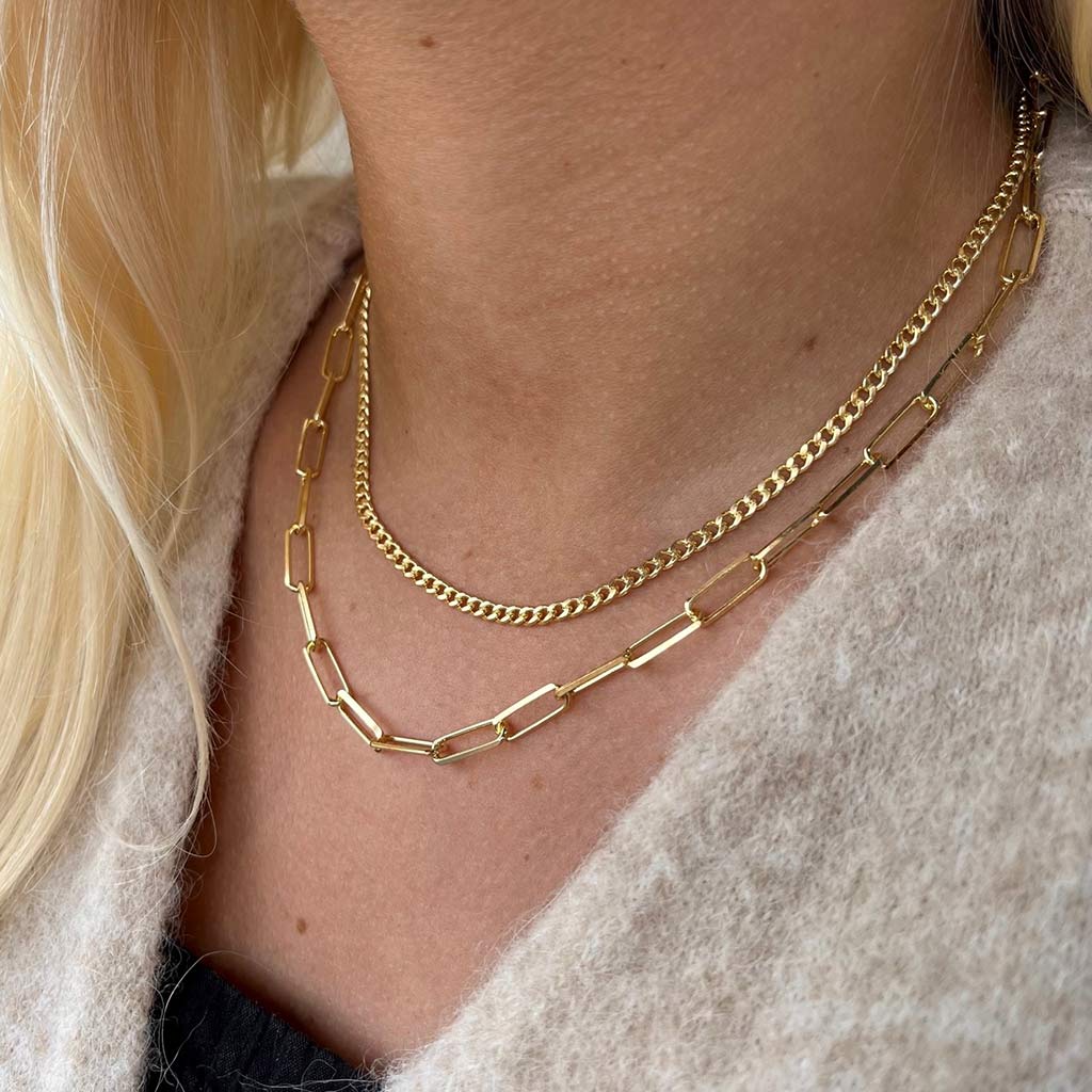 Halskæde db.rk. panzer+long link sølv fg.