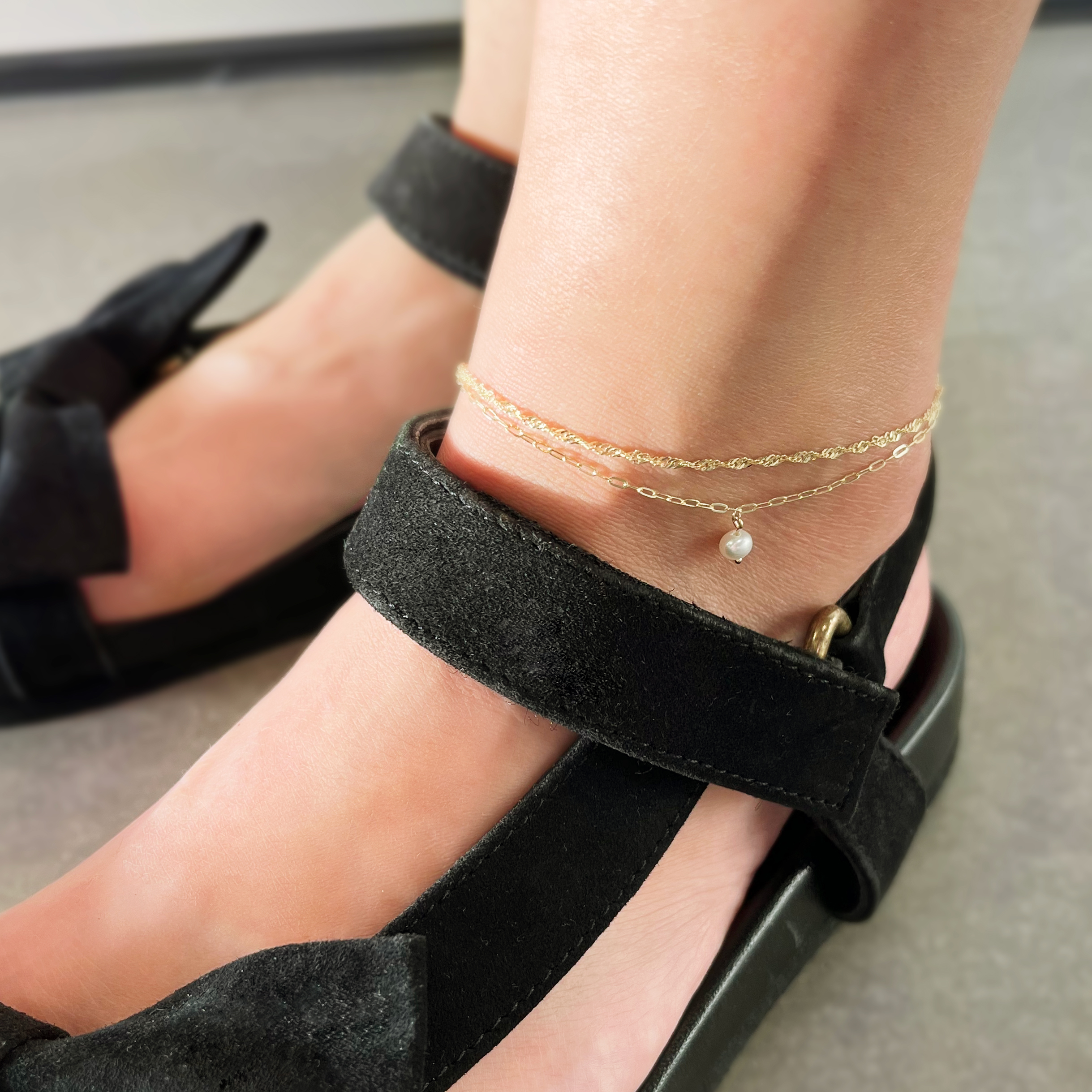 Ankelkæde singapore 23+3cm 8 kt