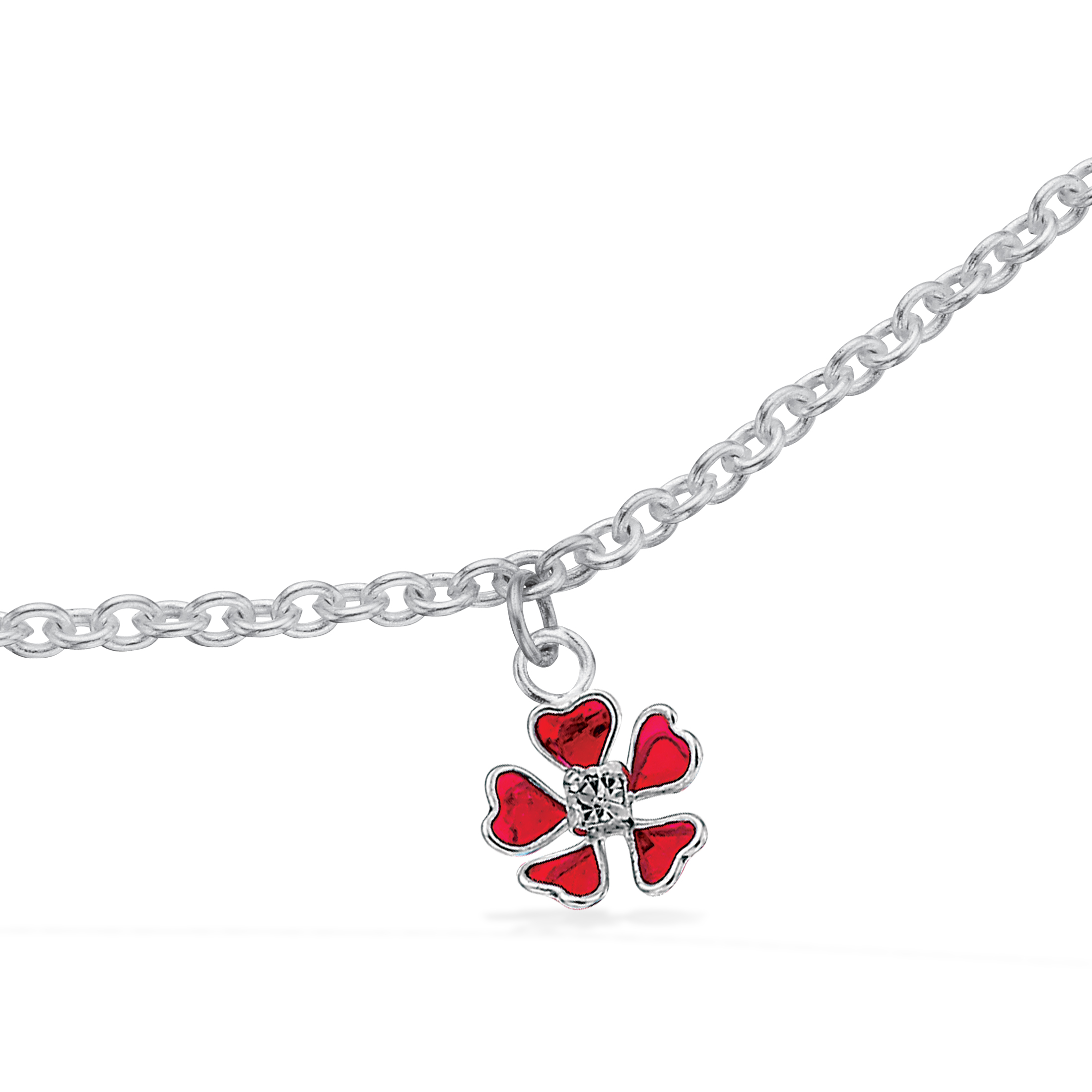 Børnearmbånd rød blomst sølv 14+2 cm.