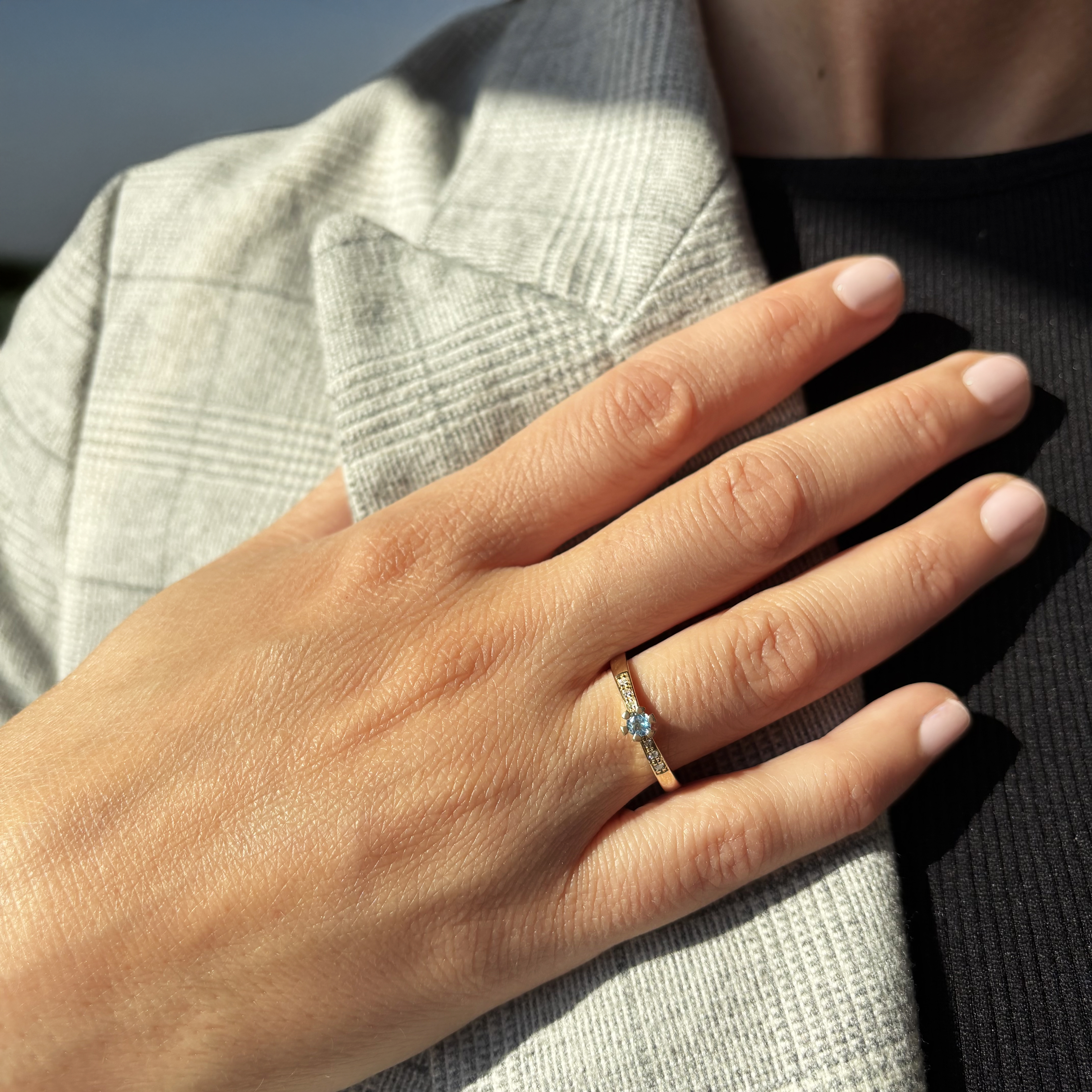 Vida Darling ring 0,10 blå topas+0,04H-W/P1 8 kt