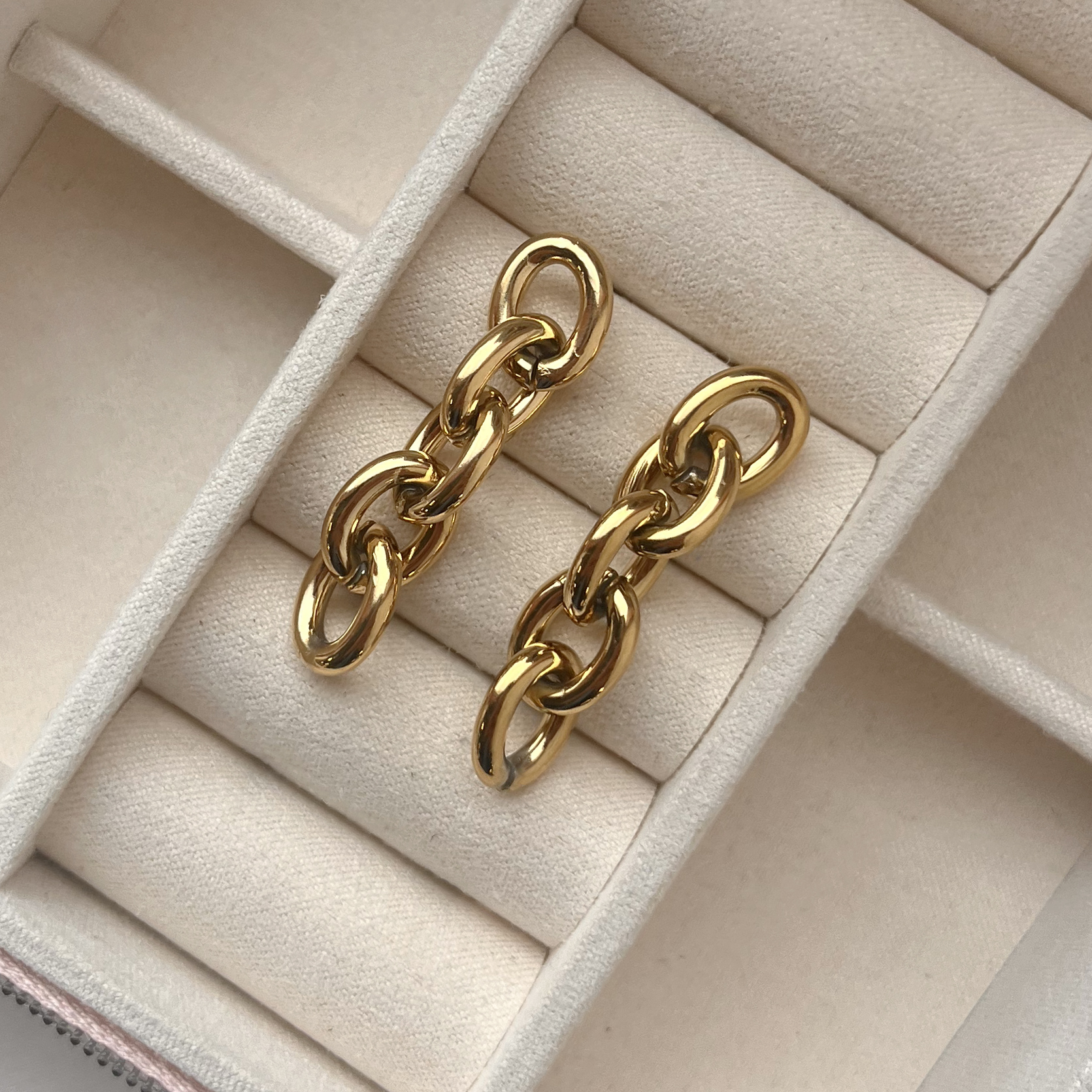 Molly øreringe m/kæde stål guldfarvet