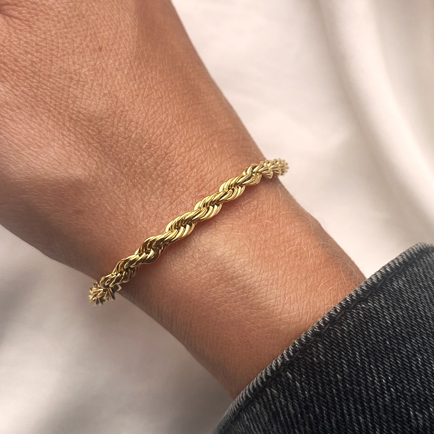 Molly armbånd cordel 3,5 mm stål guldfarv. 19+3 cm